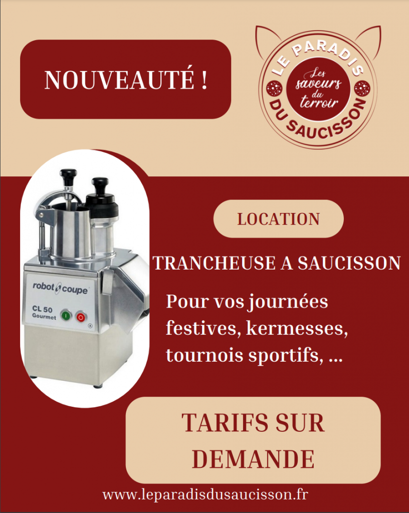 Location d’une trancheuse à saucisson pour vos kermesses, journées festives, tournois sportifs alors n’hésitez plus et contactez-nous :